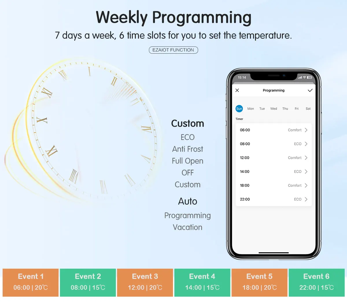 🔥 Programmable Heating: Customize daily and weekly temperature programs to optimize comfort.