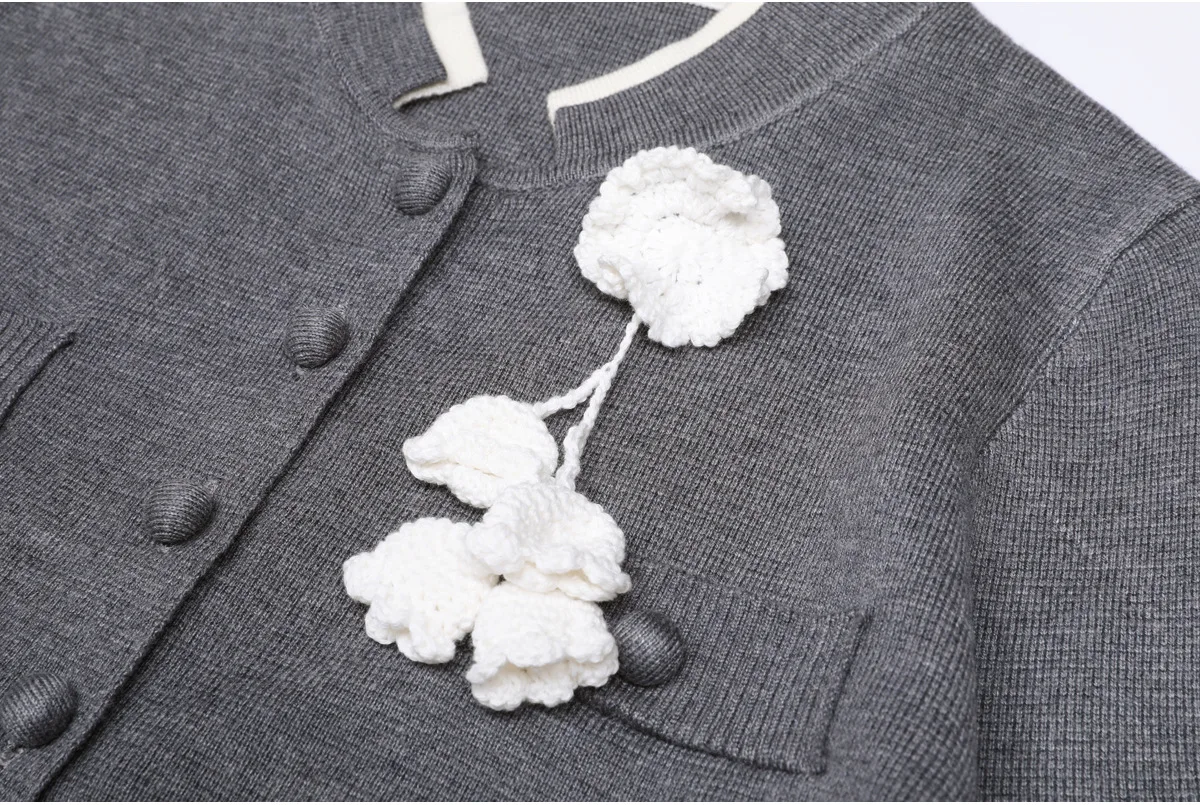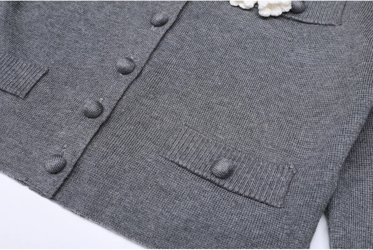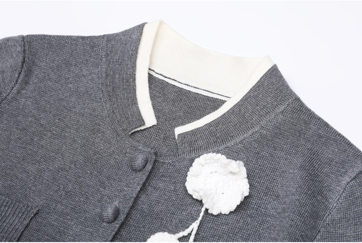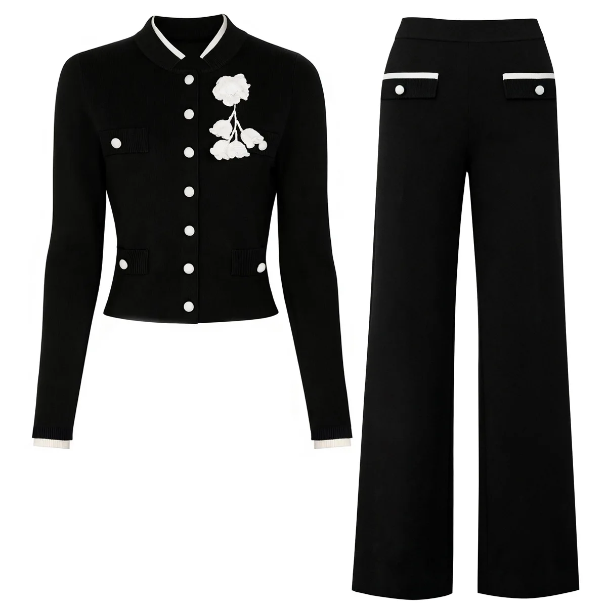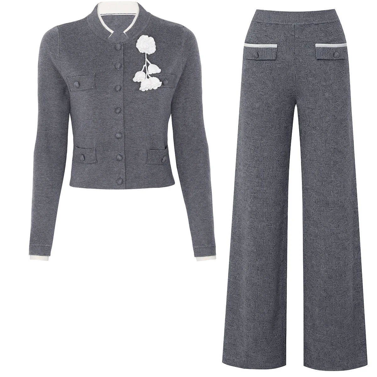 AIMEISI women’s two-piece set, floral embroidered sweater set, winter knit outfit, high-end women’s loungewear, cardigan and pants set, cozy knitwear for women, elegant casual outfit, embroidered winter clothes