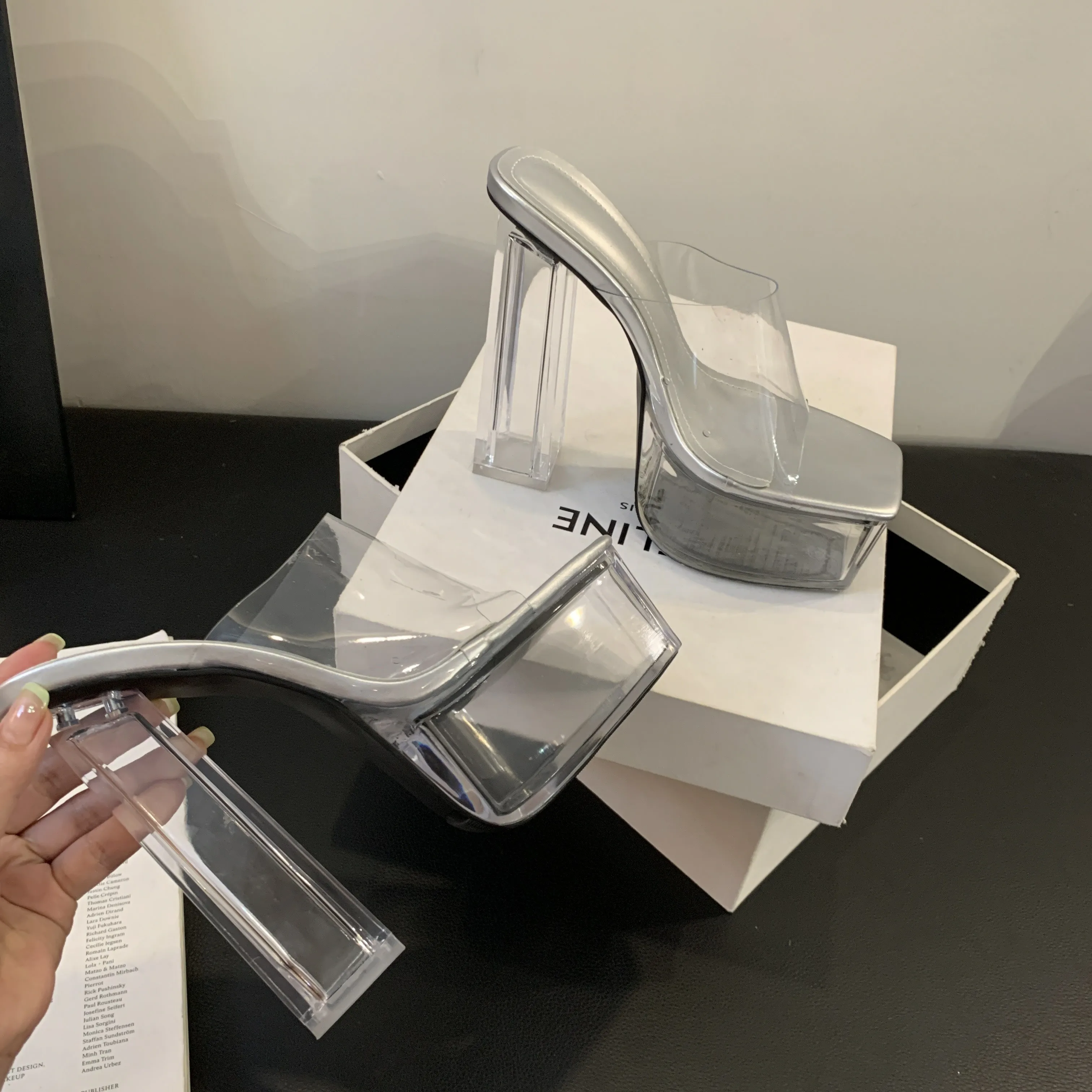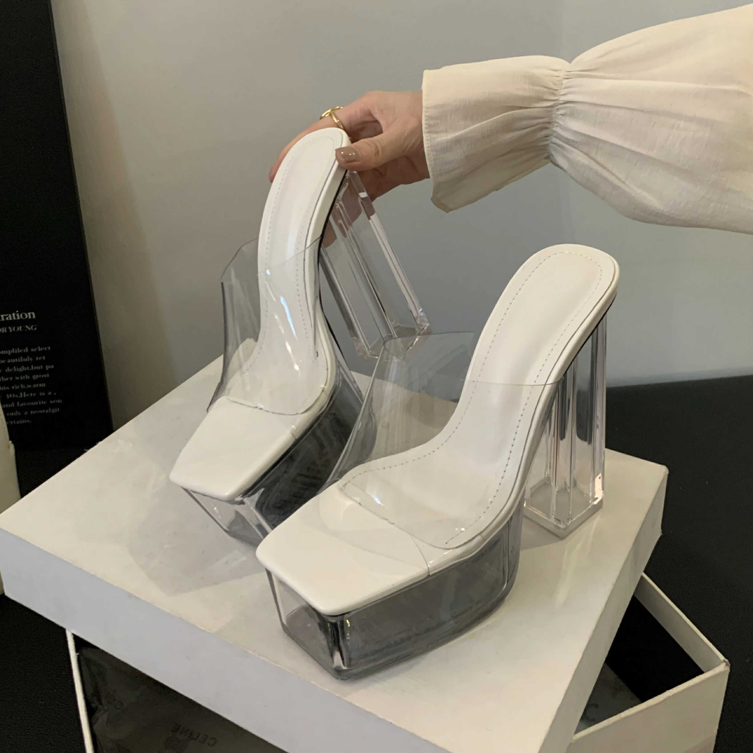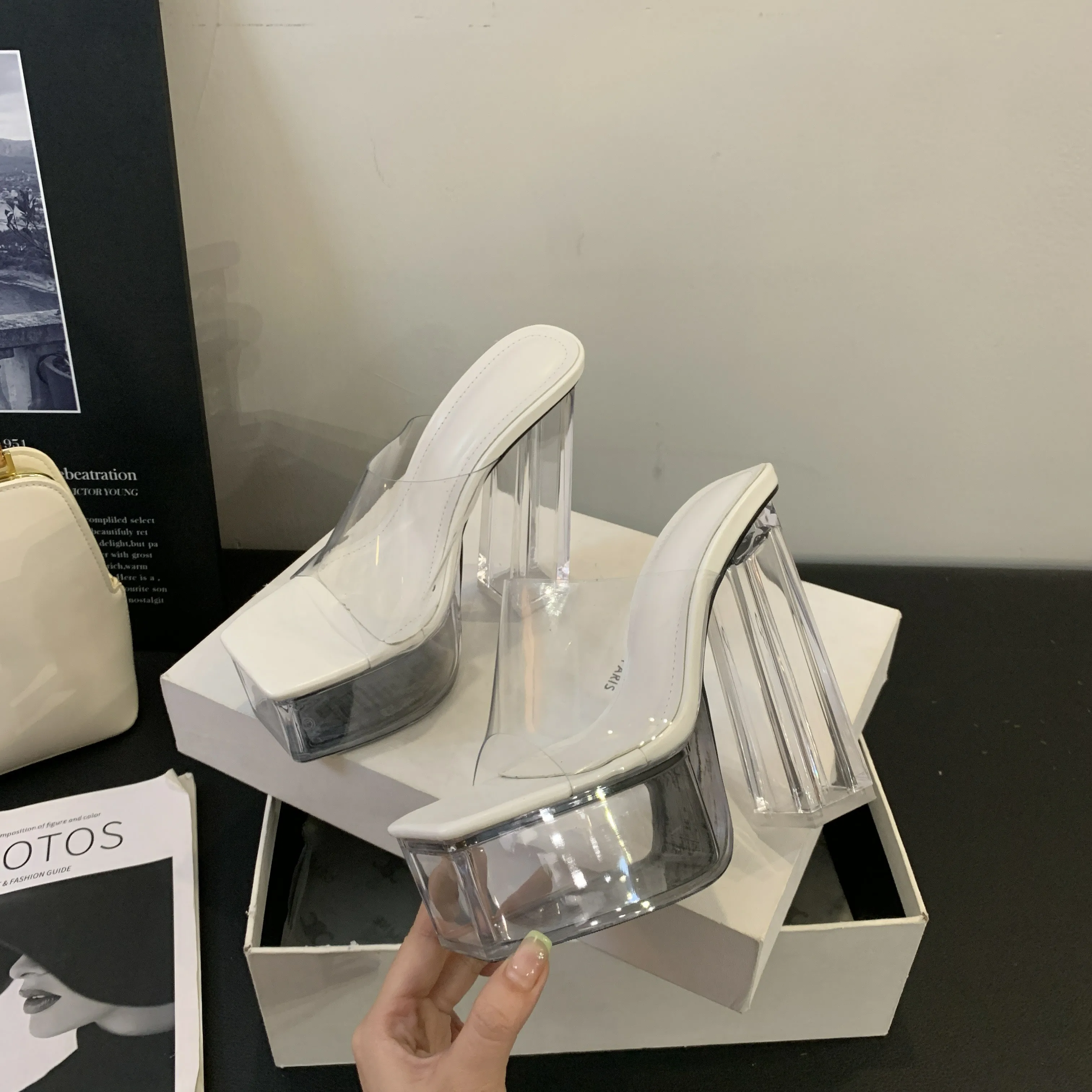 15cm transparent crystal heel for bold, confident style