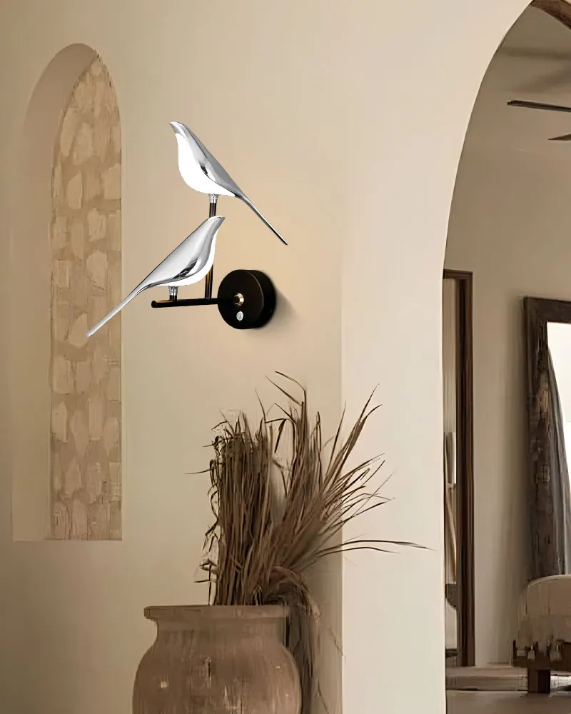 Nordic Touch Switch LED Wall Lamps for Bedside TV Background Gold Silver Magpie Bird LED Wall Lights Wall Sconce for Corridor