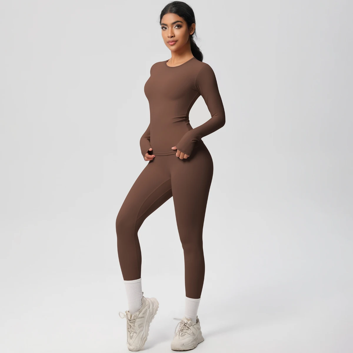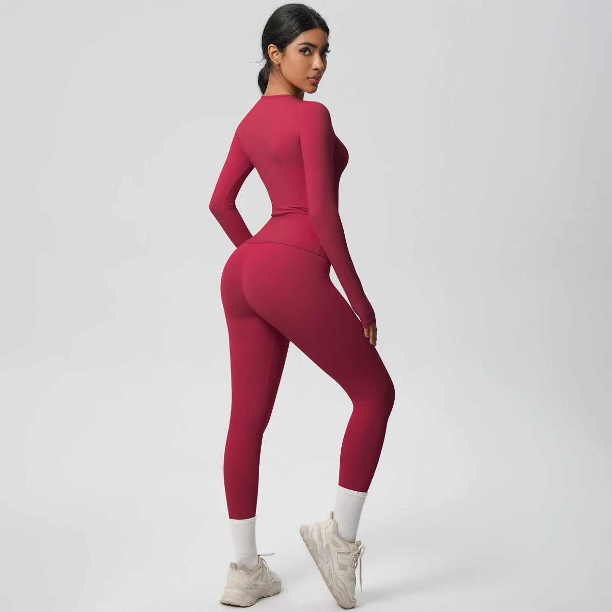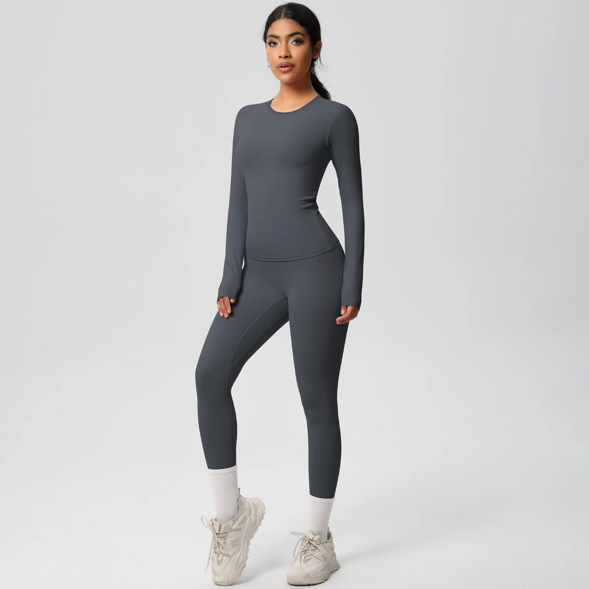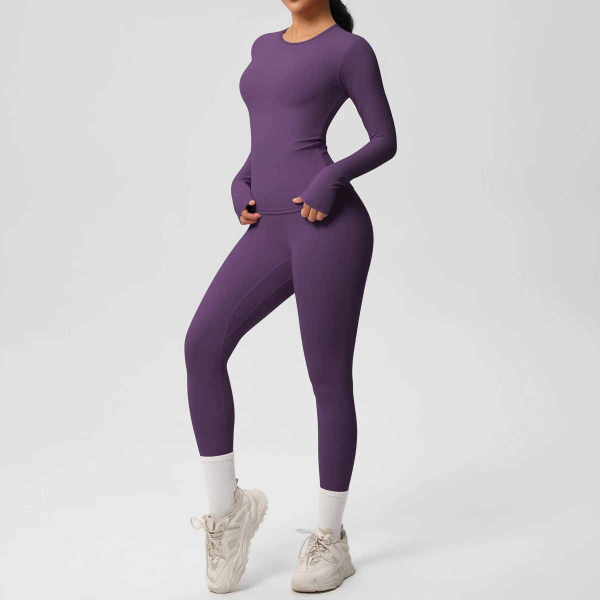 women’s workout set, 2-piece gym outfit, yoga leggings and top, women’s fitness tracksuit, long sleeve activewear set, running outfit for women, high waist sports leggings, gym clothes for women