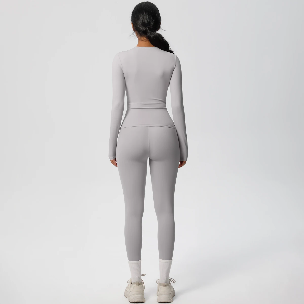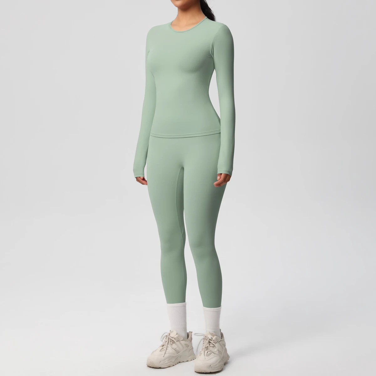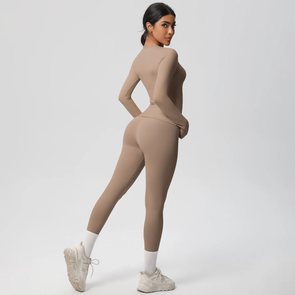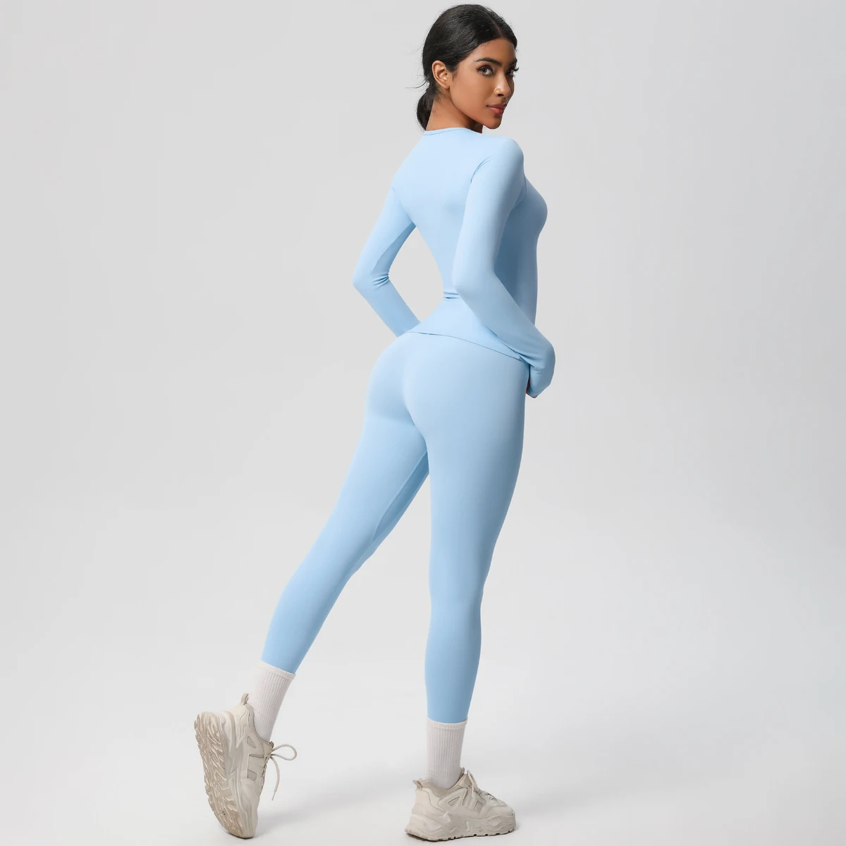women’s workout set, 2-piece gym outfit, yoga leggings and top, women’s fitness tracksuit, long sleeve activewear set, running outfit for women, high waist sports leggings, gym clothes for women